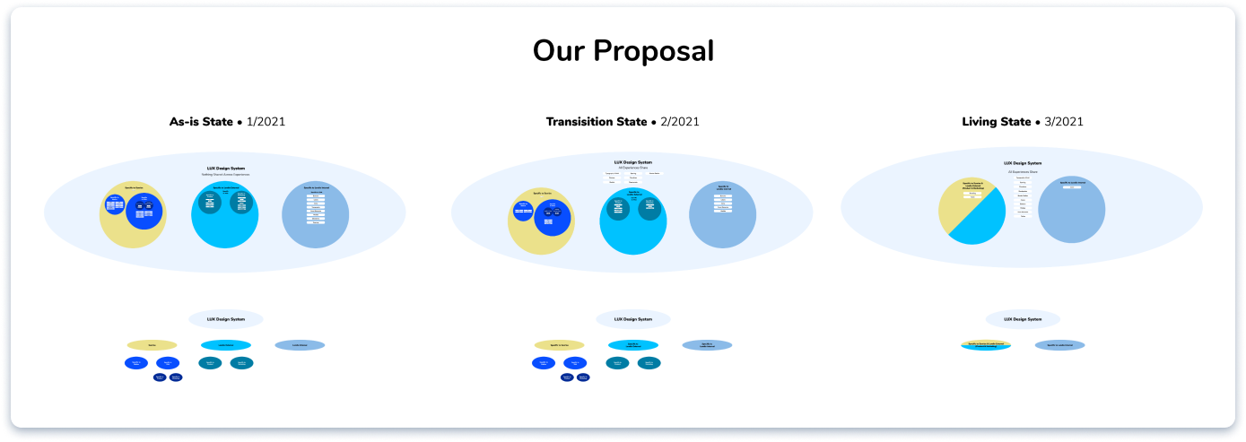 This included creating a side-by-side comparison for each app/site page to illustrate to the teams how the new system would affect their pages.