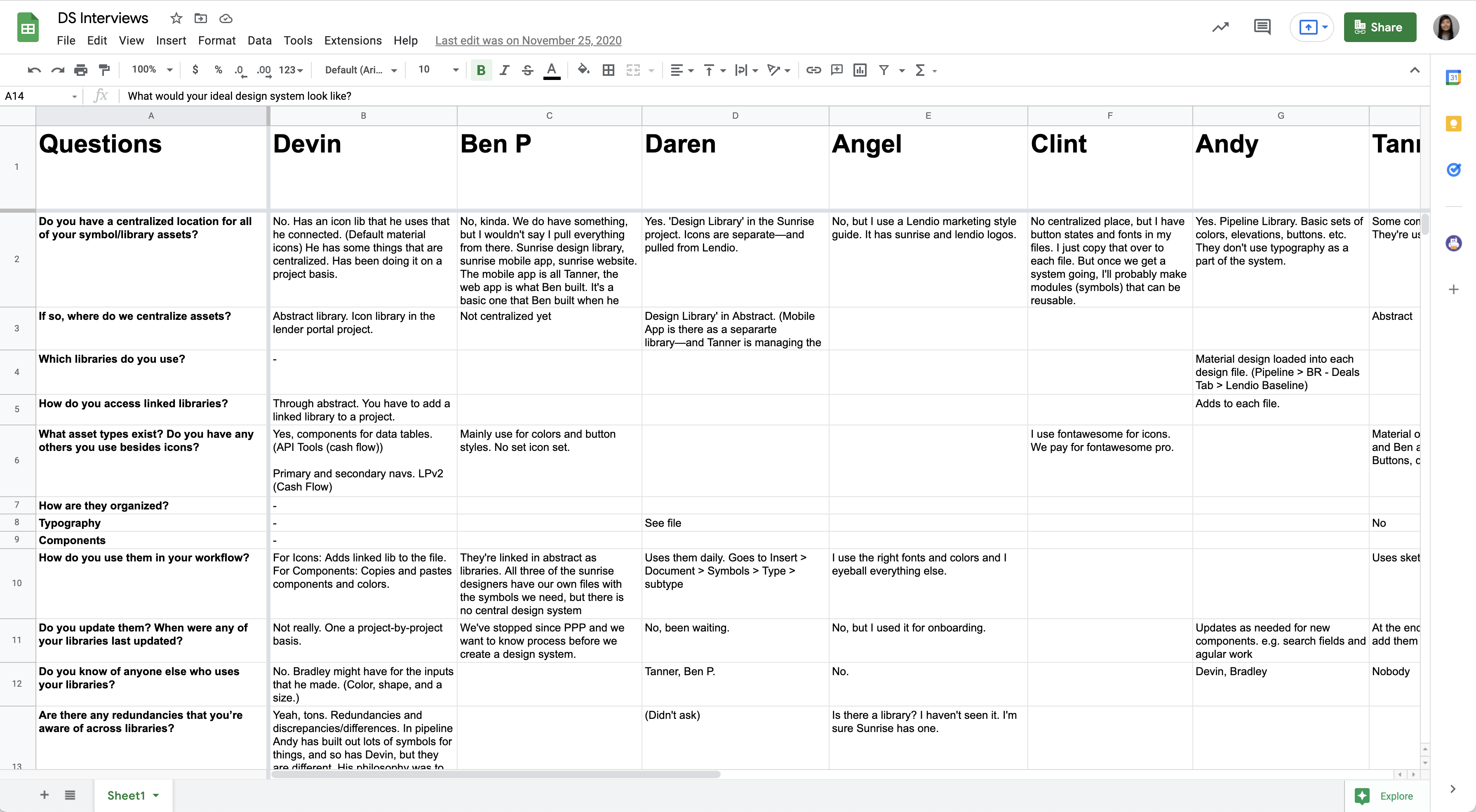- Spreadsheet of designer responses
